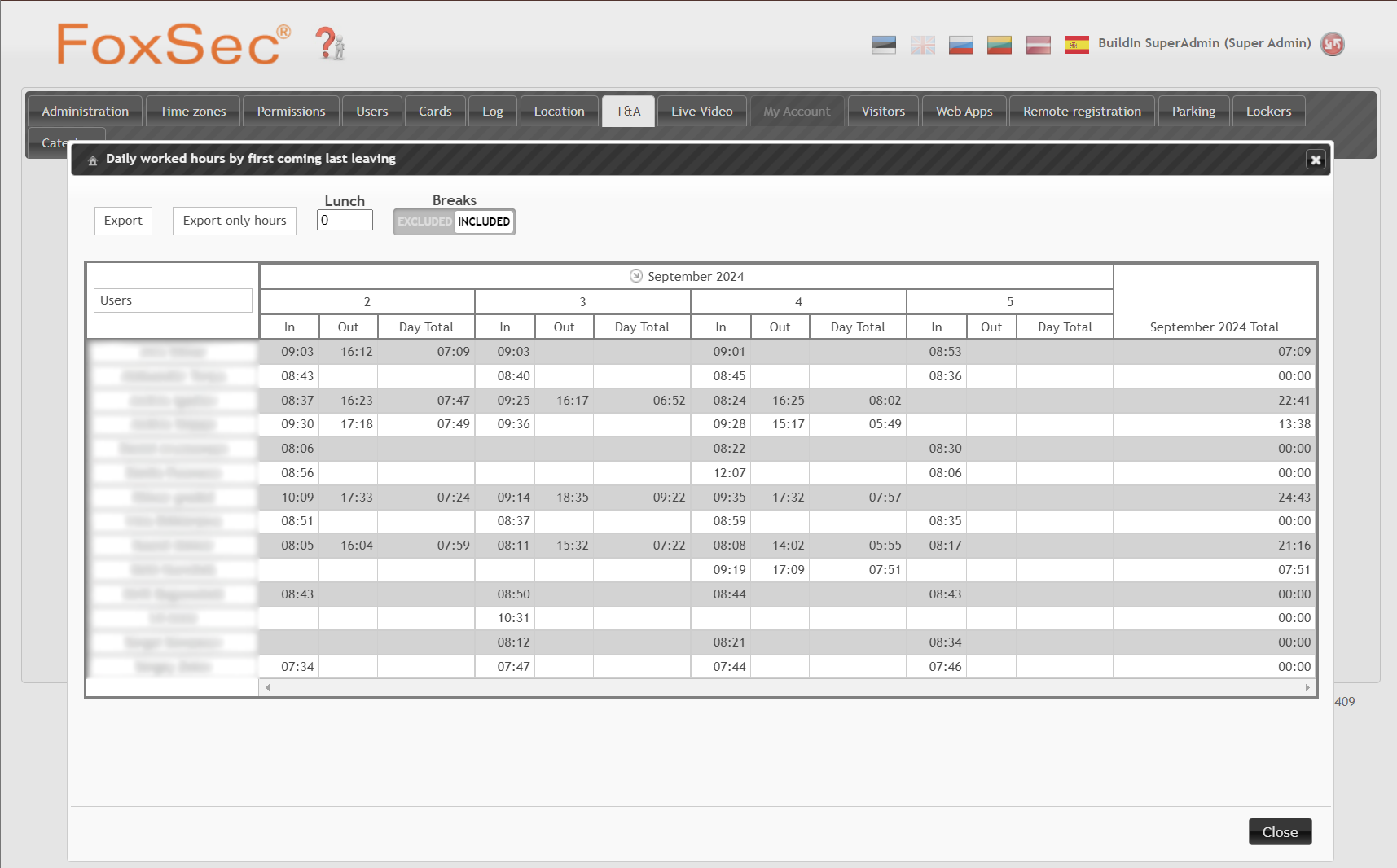 Managing employee attendance has never been easier! The FoxSec Web Time & Attendance module is your go-to solution for tracking work hours, identifying discrepancies, and generating insightful reports. With flexible setup options, you can customize Time and Attendance buildings, building objects, and work categories to fit your unique needs.